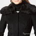Женственное приталенное однобортное пальто. Широкий отложной воротник с отделкой искуственным мехом. Застежка на пуговицы. Рельефные швы декорированы атласным кантом.