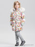 Пальто полуприталенного силуэта. Центральная застежка наоткрытую тесьму-молнию, с нижней ветрозащитной планкой. Воротник стойка. Рукав втачной, регулируемый по длине отворотными манжетами с внутренними ветрозащитными трикотажными напульсниками. На нижней части переда боковые прорезные карманы. Капюшон съемный на молнии, с регулируемой кулисой. Пальто имеет датчик контроля температуры.