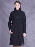 Классическое женское пальто прямого кроя из драповой ткани. Спереди застежка на пуговицы. Широкий воротник-стойка.