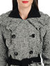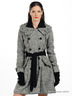 Детали: отложной воротник на кулиске и с лацканами, застегивается на пуговицы, спереди 2 прорезных кармана на клапане, талия со шлевками и поясом