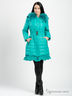 Фантазийное длинное пальто с застежкой на молнию и планкой. Капюшон оторочен по краю натуральным мехом. Декоративный пояс с металлической пряжкой подчеркивает линию талии и делает модель более женственной. Модель декорирована втачными карманами на молнии и рюшами по низу изделия.