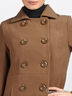Двубортное приталенное пальто из плотной, приятной на ощупь ткани. Застегивается на пуговицы. Отложной воротник. Длинный прямой рукав с декоративным хлястиком на пуговице. Два втачных кармана. Низ спинки дополнен шлицей. Тонкая шелковистая подкладка.