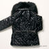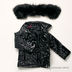 Стильное пальто для девочки черного цвета. Застегивается на пуговицы и пояс, имеет высокий воротник с меховой отделкой.