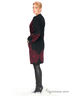 Вязаное пальто, на подкладке, с жаккардовым рисунком "барокко", сплошным по переду и купонным по рукавам и спинке, отделано кожей. В комплект входит узкий ремень с цепочкой и кисточкой.
