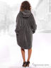 Выполнено из теплой и практичной полушерстяной ткани. Имеет необычную скошенную линию низа и широкие рукава - летучая мышь. Линия горловины оформлена большим, уютным капюшоном. На спинке пальто - крупная складка.