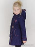 Куртка приталенного силуэта застегивается на молнию и кнопки. Два передних кармана. Декоративная прострочка. Пояс в комплекте. Манжеты, ветрозащитный клапан, карманы и капюшон украшены оборками. Утеплитель: синтепон.