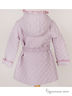 Куртка приталенного силуэта застегивается на молнию и кнопки. Два передних кармана. Декоративная прострочка. Пояс в комплекте. Манжеты, ветрозащитный клапан, карманы и капюшон украшены оборками. Утеплитель: синтепон.