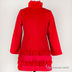 Обворожительное пальто для девочки расклешенного силуэта. Из плотной ткани, шелковистая подкладка. Воротник стойка, длинные широкие рукава. Спереди 2 прорезных кармана. Застегивается на пуговицы. Воротник и низ изделия украшены многослойными воланами.