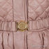 Пальто для девочки, с простежкой на резинке. Два прорезных кармана. Передняя и задняя полочка до линии талии дополнительно утеплены подкладом из искусственного меха. В боковых швах шлевки, в которые вставлен съемный пояс. Застегивается на молнию. Капюшон и мех от капюшона - съемные. Утеплитель: синтепон.