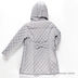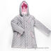 Детали: капюшон пристегнут на кнопки, ворот-стойка, застежка на молнию и кнопки, два передних кармана, декоративный хлястик в виде бантика, полочка украшена нашивкой с ленточкой и стразами