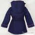 Куртка приталенного силуэта застегивается на молнию и кнопки. Два передних кармана. Декоративная прострочка. Пояс в комплекте. Манжеты, ветрозащитный клапан, карманы и капюшон украшены оборками. Утеплитель: синтепон.