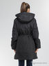 Пальто утепленное, стеганое, с поясом, с капюшоном на пуговицах. Спереди застежка "молния", закрытая планкой на кнопках. Спереди 2 кармана. Рукава утеплены внутренними трикотажными манжетами.