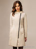 Пальто из плащевой ткани. Приталенный силуэт, капюшон выполнен из мягкого вязаного трикотажа. Застежка смещенная на молнии. Пояс-хляст подчеркивает талию.