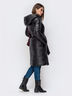 Удлиненная зимняя куртка приталенного силуэта из глянцевого плащевого материала с комбинированной отстрочкой. Модель с объемным вшитым капюшоном и вместительными карманами на полочке. Застегивается на молнию по всей длине. Пояс из основного материала в комплекте. Утеплитель – силикон 240. Рассчитано на температурный режим от 0 до -20 °C.