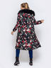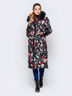 Длинная куртка с контрастными вкраплениями. Модель прямого кроя со вшитым капюшоном. Искусственный мех – отстегивается. На полочке предусмотрены объемные накладные карманы для удобства в носке. Застегивается на молнию. Изделие рассчитано на температурный режим до -10°С.