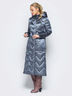 Оттенок изделия может отличаться.Тёплый зимний пуховик с зигзагообразной отделочной строчкой. На полочке расположены вместительные накладные карманы с магнитами. По бокам - две функциональные молнии. Изделие застегивается по всей длине на молнию и планку на магнитах. Объем капюшона регулируется кулиской. Капюшон не отстегивается. Наполнитель – G-loft 200 мм. Изделие рассчитано на температурный режим до -20 °С.