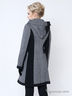 Стильное пальто приталенного силуэта с оригинальным воротом, переходящим в капюшон. Застегивается на пуговицы, декорировано контрастными вставками. Отличный вариант для активных леди.