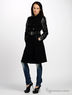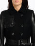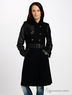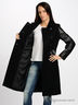 Стильное пальто, с отложным воротником и двубортной застежкой на пуговицы. По бокам изделия – удобные втачные карманы. Пальто с вставками из кожзама. С внутренней стороны – шелковистый подклад. К поясу пришиты шлевки для ремня. Пояс из эластичный резинки с металлической пряжкой.