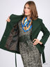 Элегантное демисезонное пальто слегка приталенного кроя. Выполнено из плотного шерстяного материала, шелковистая подкладка. Длинные рукава, отложной воротник, застегивается на пуговицы, талия со шлевками на поясе.