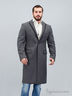 Удлиненно пальто прямого силуэта с отложным воротником и застежкой на пуговицы. Шаговая шлица сзади.