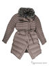 Стеганое пальто обращает на себя внимание вязаными подвязами на рукаве, распашной полочкой и ассимметричной линией низа. Леопардовый воротник из искусственого меха- изысканный акцент на фоне плащевки с легким блеском розового золота.