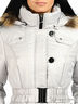 Детали: воротник стойка, капюшон на кнопках, отстегивающийся меховой воротник, застегивается на молнию и пуговицы, спереди 2 прорезных кармана на молнии, талия подчеркнута поясом-резинкой на застежке