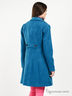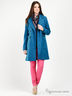 Потрясающее пальто из плотного драпа. Отложной ворот с лацканами. Двубортная застежка на пуговицы. Длинные прямые рукава. На полочках три прорезных кармана с клапанами. На спинке хлястик на пуговицах.