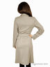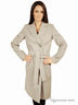 Стильное женское пальто приталенного силуэта. Имеет отложной ворот, застегивается на пуговицы и завязывается на пояс.