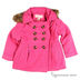 Пальто для девочки. Силуэт приталенный. Застежка на пуговицах. Капюшон отделан мехом. Рукав длинный. Два врезных кармана.