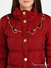 Элегантное пальто с отложным воротником-стойкой и длинными рукавами. Приталенный силуэт. Выполнено из гладкой плащевки и шелковистой подкладки. Имеет застежку на молнию и ветрозащитный клапан на кнопках. Спереди 2 прорезных кармана. манжеты на трикотажной резинке. Изделие украшено золотистой цепью и бусинами. Стильный вариант на каждый день!