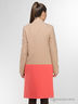 Шерстяное пальто на подкладке, прямого силуэта, длиной до середины икры. Прилегание по лифу обеспечивают нагрудные рельефы заканчивающиеся по линии отреза в которой расположены прорезные карманы. Рукав двухшовный, воротник стойка. Застегивается на крупные кнопки.