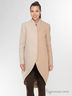 Шерстяное пальто на подкладке, овального силуэта, длиной до середины колена. Пальто делится на два цветовых блока с границей по среднему шву спинки и полочки. Цельнокроеный воротник стойка оформлен по полочке вытачками, обеспечивающими комфортное прилегание воротника вокруг шеи. В боковых швах расположены карманы.