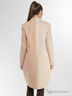 Шерстяное пальто на подкладке, овального силуэта, длиной до середины колена. Пальто делится на два цветовых блока с границей по среднему шву спинки и полочки. Цельнокроеный воротник стойка оформлен по полочке вытачками, обеспечивающими комфортное прилегание воротника вокруг шеи. В боковых швах расположены карманы.