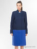 Шерстяное пальто на подкладке, прямого силуэта, длиной до середины икры. Прилегание по лифу обеспечивают нагрудные рельефы заканчивающиеся по линии отреза в которой расположены прорезные карманы. Рукав двухшовный, воротник стойка. Застегивается на крупные кнопки.