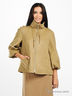 Элегантное короткое пальто нежного бежевого цвета. Мягкий шерстяной материал, очень приятный на ощупь защитит Вас от холода и ветра. Отложной воротник с кулиской. Застегивается на металлическую молнию. Рукава-баллоны длиной 3/4. Два прорезных кармана. Цветная атласная подкладка.