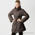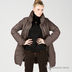 Новомодное женское пальто пуховое с молниями на груди, приталенное. Ворот стойка, застежка на молнии, длинный рукав, два прорезных кармана, синтетическая подкладка, наполнитель - пух.