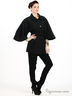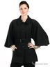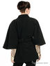 Детали: отложной воротник, широкие рукава 3/4, застегивается на пуговицы, спереди 2 прорезных кармана, талия со шлевками на поясе