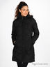 Приталенное пальто с отстегивающимся капюшоном и воротом-стойкой застегивается на молнию. Два передних кармана.