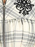 Пальто из тонкой шерсти в клетку. Украшено ручной вышивкой, кантом и кружевом на поясе. Модель с длинными рукавами и отложным воротником. Отличный вариант на каждый день.