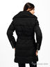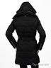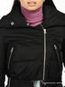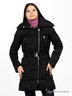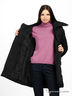 Детали: широкий воротник-стойка, в который прячется тонкий капюшон без утеплителя; декоративная прострочка; два нагрудных кармана на молнии; два внешних кармана на кнопках; вертикальная молния на конце рукавов; по боковым швам пришиты шлевки, вставлен пояс; застежка изделия на молнию; шелковистая подкладка с узором