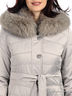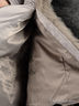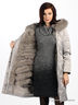 Силуэт: прямой Материал: серебристая плащевка Утеплитель: съемная подкладка из натурального меха с длинными рукавами и капюшоном Детали: капюшон с кулиской по краю, застегивается на молнию и ветрозащиту на кнопках, три кармана, талия подчеркнута поясом Стиль: повседневный, оригинальный