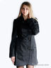 Пальто с отрезной талией. Широкий отложной воротник. Застежка на крупные пуговицы. Декоративные погоны на плечах и потайные пуговицы делают модель эффектной. Втачные карманы украшены планками на пуговицах. Сзади на поясе хлястик на пуговицах.