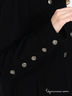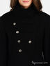 Пальто с отрезной талией. Тип кроя - фрак. Втачные карманы с планкой. Воротник высокая стойка застегивается сбоку на кнопки. Застежка на декоративные металлические пуговицы с рельефным рисунком. На рукавах шлевки с застежкой на пуговицы. Сзади на поясе хлястик на пуговицах.