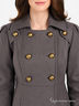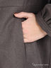 Пальто с отрезной талией. Покрой классический. Потайные карманы с боков. Английский воротник. Застежка идет в два ряда на металлические выпуклые пуговицы бронзового цвета. Сзади на поясе хлястик на пуговицах. Рукава посажены на сборку, по низу рукава идет манжет.