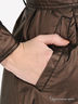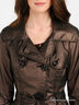Классический плащ прилегающего силуэта. Отложной воротник с лацканами. Застежка на крупные черные пуговицы. На спинке и на полочках - кокетки. Спереди и сзади шлевки для пояса. Подкладка из ткани с фиолетовым принтом. Прекрасный вариант на каждый день!