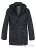 Пальто-пуховик с капюшоном. Выполнено из непромокаемой ткани со вставками из драпа и стеганой подкладкой. Внутренняя утепленная деталь спереди. Четыре кармана спереди и один внутренний. Потайная кулиска по талии. Застежка на молнии и кнопки.