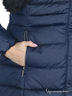 Стеганая куртка с объемным воротником из искусственного меха. Модель приталенного покроя с высоким воротником и асимметричной скрытой застежкой на молнию. Два кармана на молнии. Манжета по рукаву. Наполнитель: 50% пух, 50% перо.