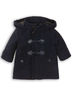 Пальто для мальчика прямого кроя с длинными рукавами и капюшоном.