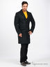 Элегантное пальто с классическим отложным воротником. Застежка на пуговицы. Модель имеет четыре втачных кармана с клапанами. Изделие украшено декоративными пуговицами на манжетах, прорезью внизу спинки, отстегивающимся значком на лацкане пальто. С внутренней стороны изделия есть дополнительный прорезной карман.