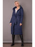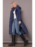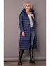 Длинная легкая стеганная куртка прямого кроя с капюшоном. Для удобства по бокам предусмотрены прорезные карманы на молнии. Застегивается куртка на кнопки.